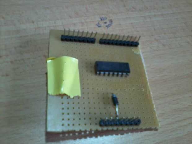 Conectan los motivos. Y conectarse a un tierra arduino y el otro a - batería de 6v. IC a la placa de la soldadura y añadir unas pinzas al final, asegúrese de que los pernos entran el arduino sin dañarlo.