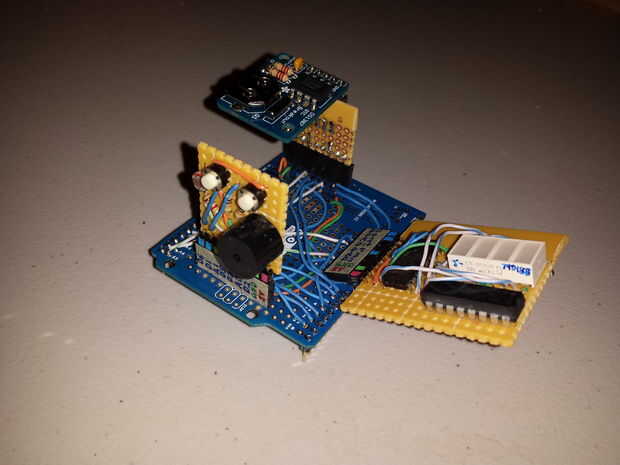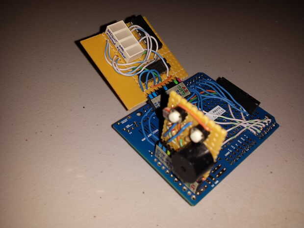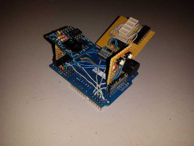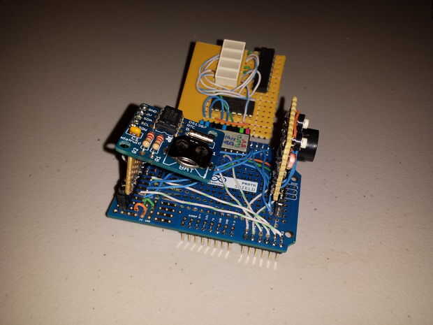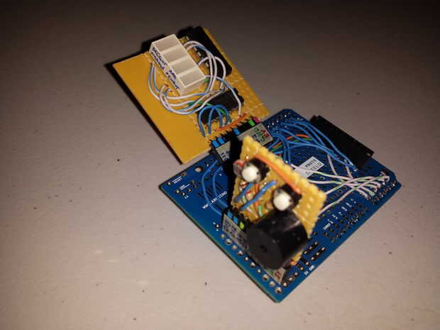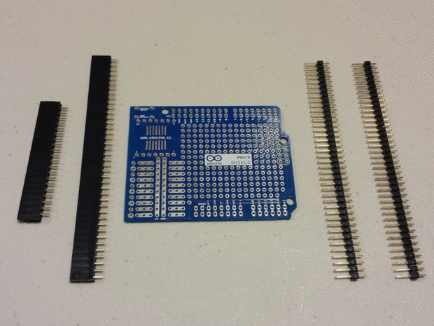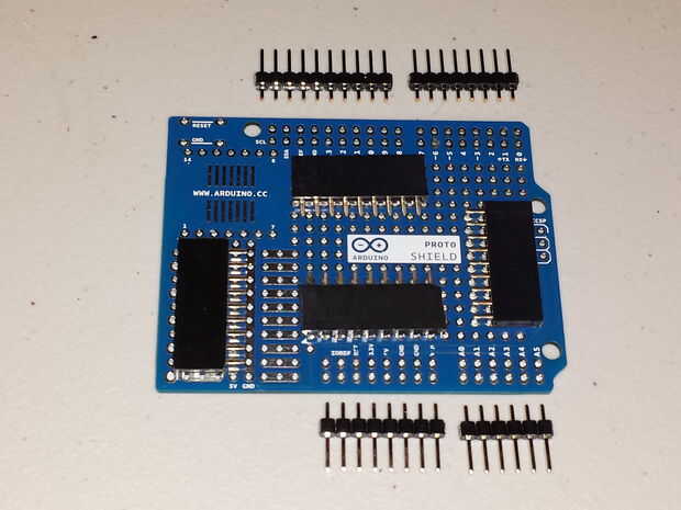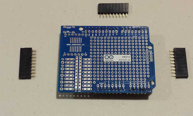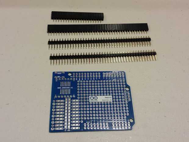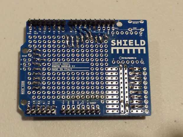 Después tuve algunos de estos mini escudos, pensé que podría quisiera usarlos juntos en un escudo. De esa manera podría tener un bonito kit Ready-Made que muchas diversas combinaciones de sensores y salidas. Hice un nuevo escudo de tamaño completo que pude conectar hasta 3 mini escudos en. 2 puertos son verticales y se establecen 1.