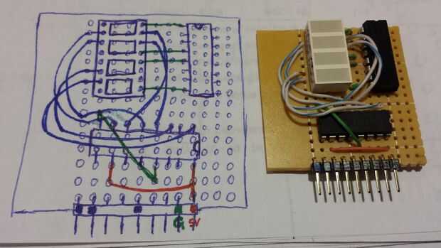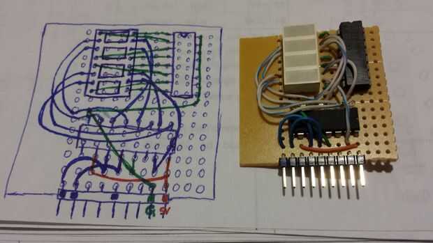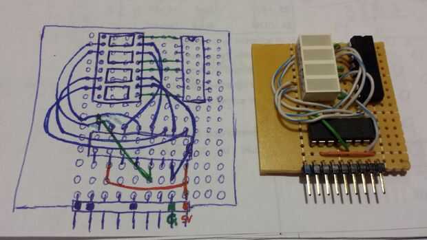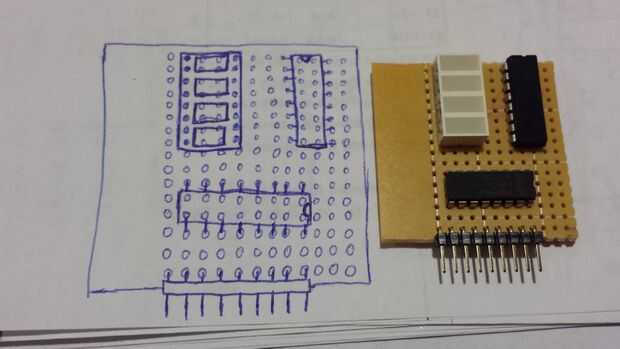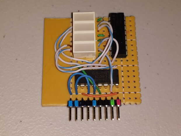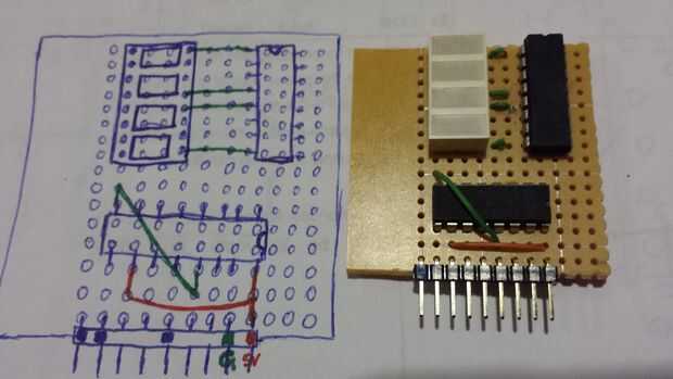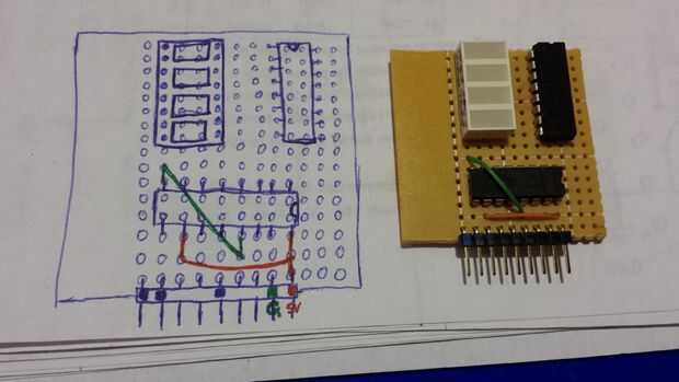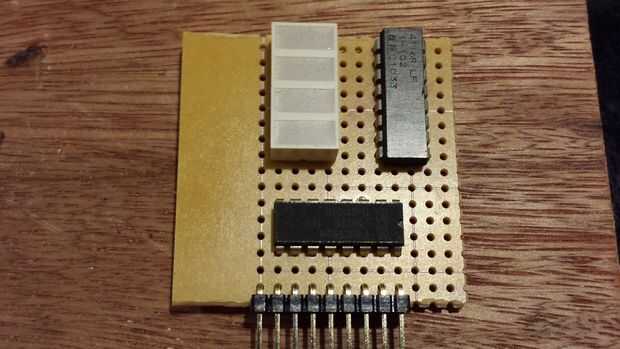 Con el registro de desplazamiento conduciendo la pantalla LED la pantalla mini, puedo conseguir lejos con usar sólo los 3 pines digitales para encender los 8 LEDs. De lo contrario, no podía pongo esto en el mini escudo ya que solo tengo 4 pines digitales dedicados a cada escudo mini. Aunque he utilizado el pin compartido 3 en el conector mini-escudo, sólo tendría 5 pernos digitales a 8 segmentos. El registro de desplazamiento hace posible conducir más LEDs sin exceder sus pernos disponibles.