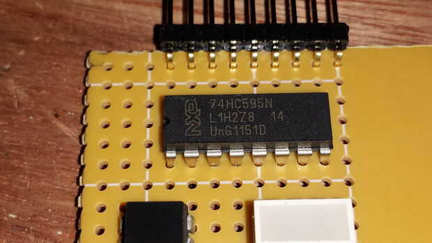 74HC595 S 3.wedding registrar - cambiar estos registros son grandes para aumentar el número de pines de salida por lo que puede conducir muchos LEDs de 3 pernos en el Arduino. Usted puede encadenar juntos para obtener aún más alfileres de salida, que sólo ellos necesitan cambiar su código para permitir que los registros de cambio adicional. Hay un buen tutorial para estas aquí.