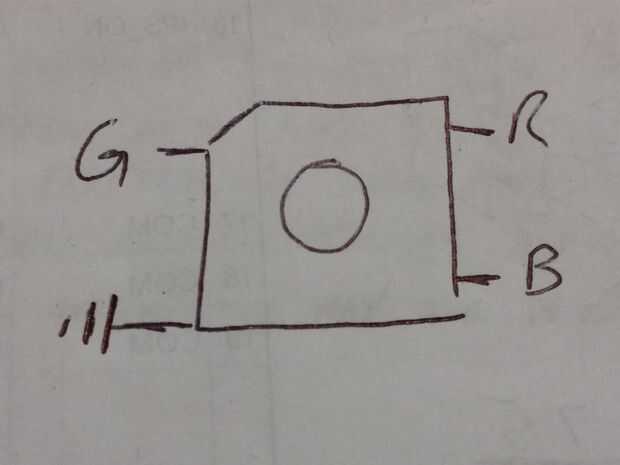Fui a la página del producto en Sparkfun y miró la hoja de datos. Estos al parecer se han discontinuado, pero básicamente es lo mismo para cualquier color completo RGB LED. Éste pasa a ser un cátodo común LED, si usted tiene un ánodo común LED, alambre el pin común a 5v en vez de a la tierra como lo hice.