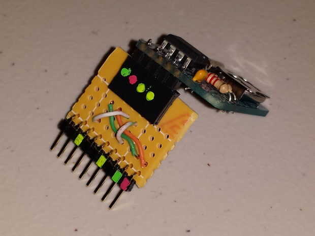 Este módulo es muy simple conectar, sólo necesita alimentación de 5v y tierra pines analógicos 4 y 5. Para hacer este adaptador, sólo debían conectar clavijas analógicas del Arduino 4 y 5 como los 2 pernos analógicos en el conector mini-escudo.