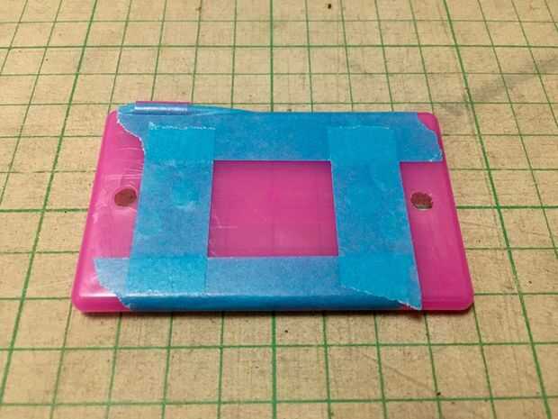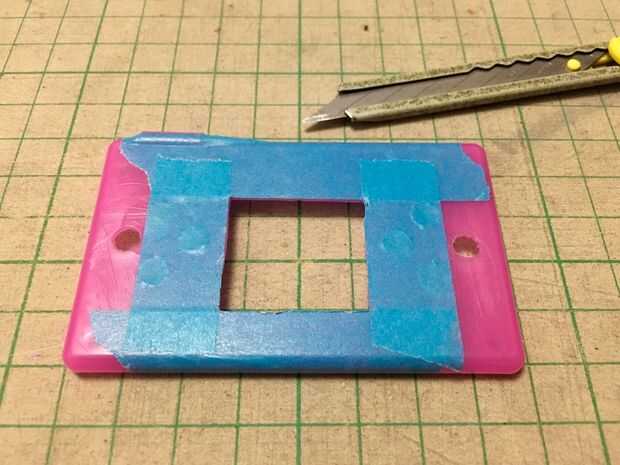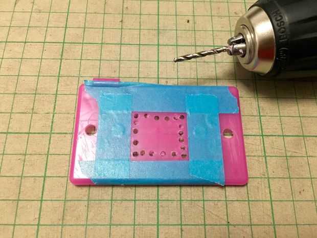 Medir y pegue la cinta adhesiva según el diseño. El taladro, corte la parte media hacia fuera y forma la frontera con el cortador.