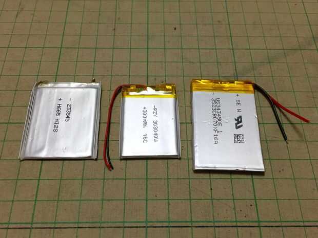 Al principio, me gustaría utilizar la Lipo batería vienen desde el antiguo teléfono celular, ya que sólo 23 mm de espesor. Pero lo encontré miss tablero de la protección y el terminal es difícil de soldar, por lo que pedí otro. 343450 es un poco demasiado grande, finalmente utilizo 303040. Que afirmaba tener 300 mAh de capacidad, creo que es bastante bueno.