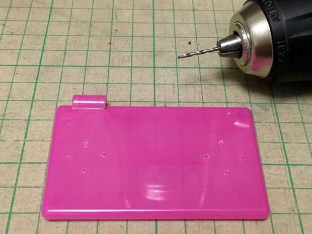 Taladre el agujero para los botones. Comienzo del agujero de 1.5mm, luego 2,5 mm, 3,5 mm, 5 mm y finalmente alrededor de 7 mm después de alisar la superficie.