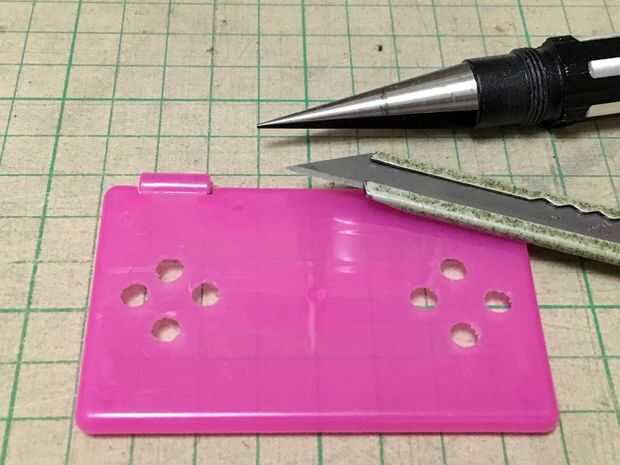 Pegar los botones SMD a la placa de PC con cinta adhesiva de doble cara, marque los puntos centrales de los botones en la cubierta posterior.