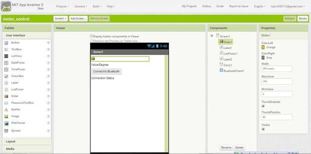 Bien en la primera imagen, que es la pantalla de diseño de appinventor, hay el objeto deslizante, el selector de lista y así sucesivamente... Me gustaría destacar alguna información sobre el objeto Cursor.