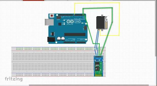 El circuito se monta como se muestra en la figura. Se hace el bosquejo está utilizando fritzing. Durante la carga el código en arduino, asegúrese de que el bluetooth RX y TX a arduino se desconectaron primero de TX y RX del arduino. Eso es todo para el montaje del circuito.