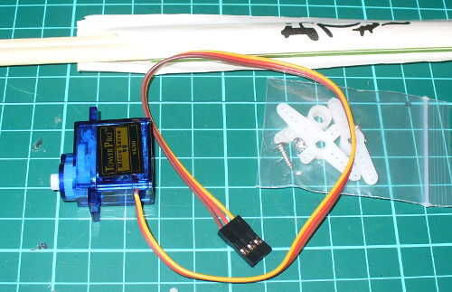 Finalmente un servo es necesaria para empujar hacia arriba y hacia abajo la tapa del libro. Se utilizó un servo micro barato que está disponible por unos pocos dólares de los típicos puntos de venta. Los palillos son cortados y usados como una extensión a la horn de servo para darle más longitud.