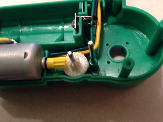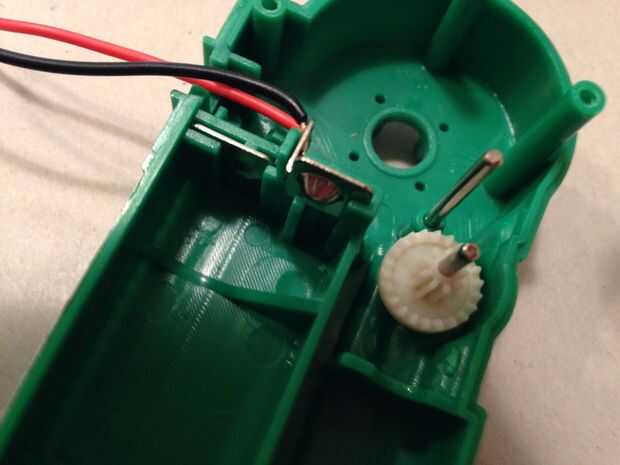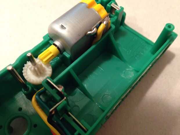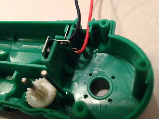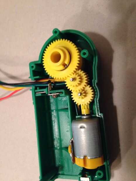 A continuación, reemplace el motor. Los cables deben ajustarse firmemente al lado del motor, que tal vez necesite usar alguna fuerza para conseguirlos. Si tu trabajo de soldadura es buena, no debería tener que preocuparse demasiado acerca de dañar los cables. Vuelva a colocar los engranajes, asegurándose de que usted tiene en el orden correcto. Si, por alguna razón, usted no tenga en cuenta el orden correcto, puede comprobar la lista de abajo.