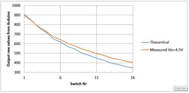 En teoría se podrían utilizar solamente los cálculos, pero encontré que es más exacto para medir con el sistema final la tensión con cada botón y ajustar en consecuencia la secuencia de comandos. Significa obviamente uno tiene que ajustar el guión cada vez que el sistema está cambiando. Por el contrario eso no ocurre a menudo.