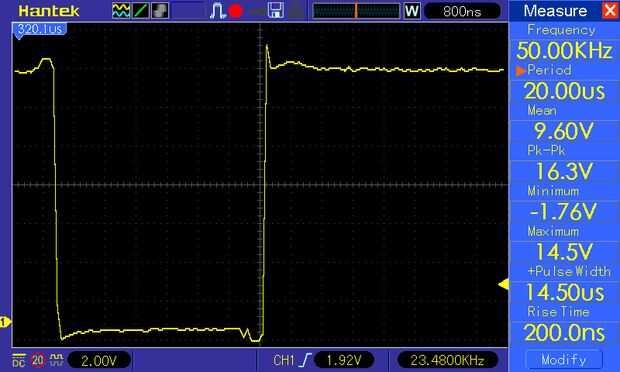Arriba se muestra la forma de onda obtenida durante mis pruebas.
