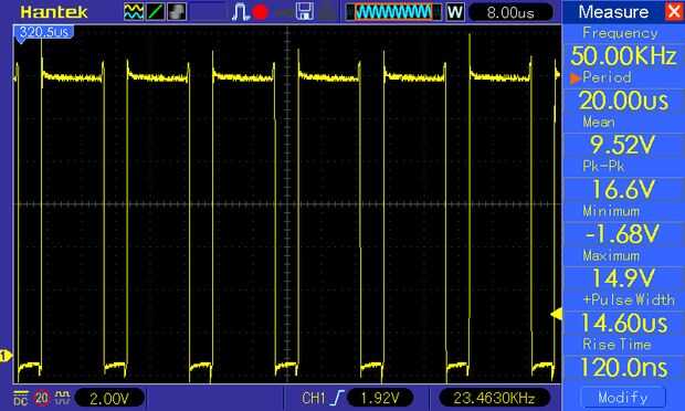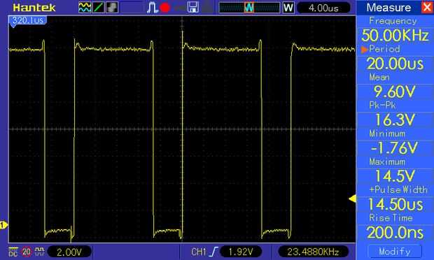 El resultado debe ser un PWM con frecuencia de 50KHz.