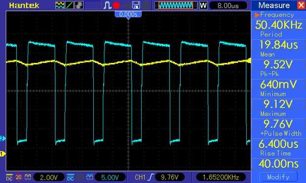 Por ejemplo si doy 50% ciclo de trabajo a una fuente de entrada de 12, la salida debería ser 6V en el ámbito de aplicación.