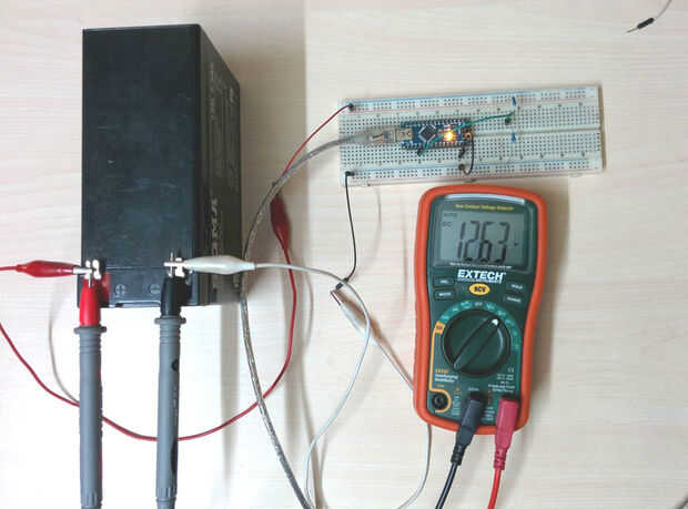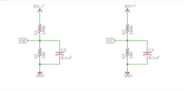 Usted puede así conocer, entradas analógicas del Arduino pueden usarse para medir la tensión entre 0 y 5V (cuando se usa el voltaje de referencia analógica estándar de 5V) y esta gama pueden aumentarse mediante dos resistencias para crear un divisor del voltaje. El divisor del voltaje disminuye el voltaje se mide a dentro de la gama de las entradas analógicas del Arduino. Podemos utilizar esto para medir el panel solar y voltajes de la batería.