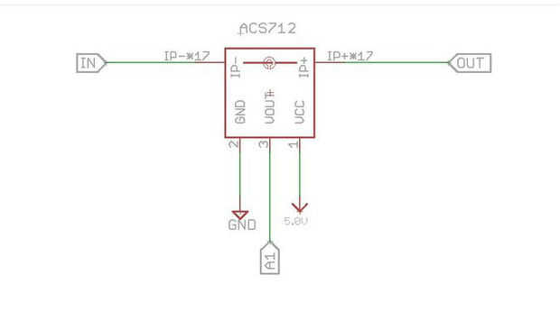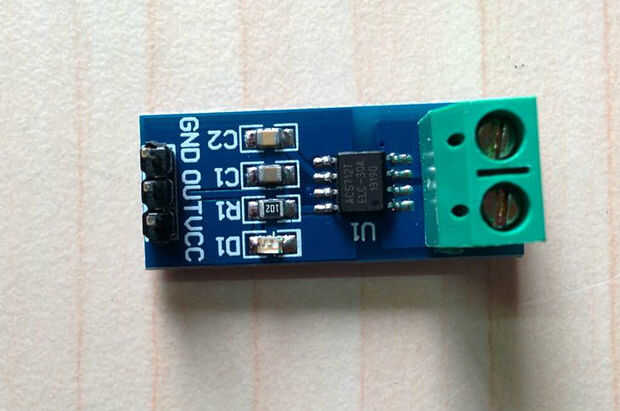Para medición de corriente he utilizado un sensor de corriente efecto Hall ACS 712 (5A).