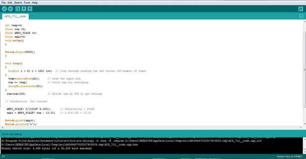 El ACS712 sensor lee el valor actual y convertir en un valor de voltaje correspondiente, el valor que une las dos medidas es sensibilidad. Usted puede encontrar en la hoja de datos.