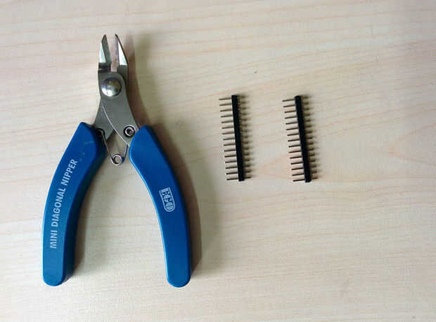 Primero corte dos filas de pin header hembra y macho con 15 pines en cada uno. Utilicé una pinza diagonal para cortar las cabeceras.
