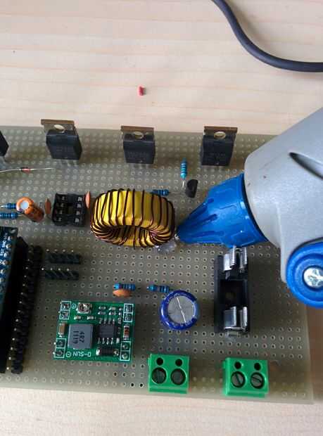 Inductor es el componente más pesado de todo el circuito. Sentarse firmemente, Aplique pegamento en la base.