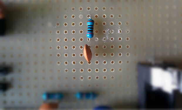 Primero la soldadura de la resistencia (R6) y condensador (C8) en serie sobre el capacitor de salida (C2).