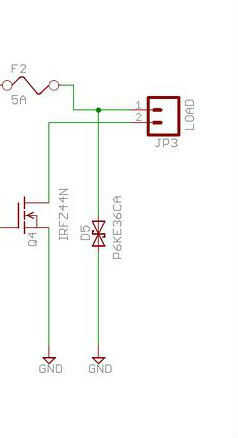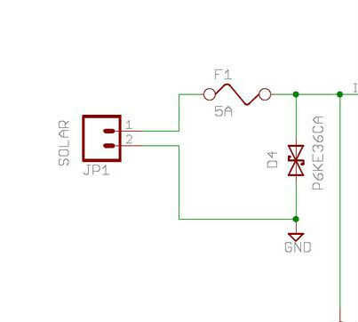 Un diodos TVS, D4 cerca del conector JP1 y D5 cerca del conector JP3.