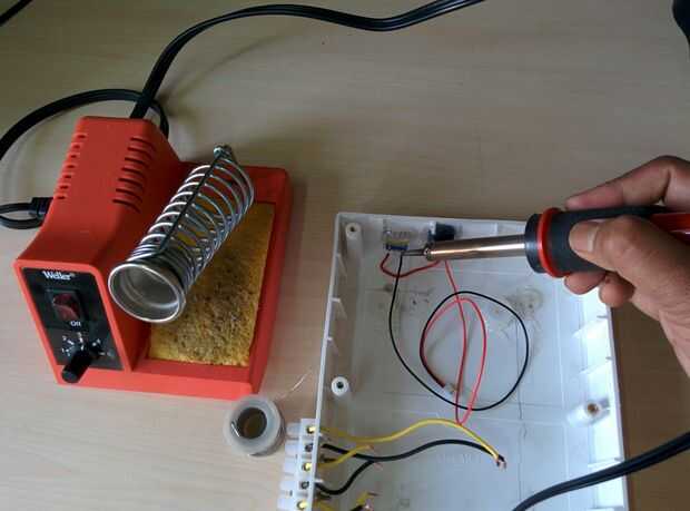 Suelde el cable rojo (+ ve) del conector JST a una terminal del interruptor. Luego soldar un pequeño cable rojo entre otro terminal del interruptor y terminal USB Vcc. Finalmente suelde el cable negro (-ve) del conector JST para la GND. USB