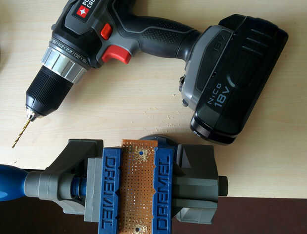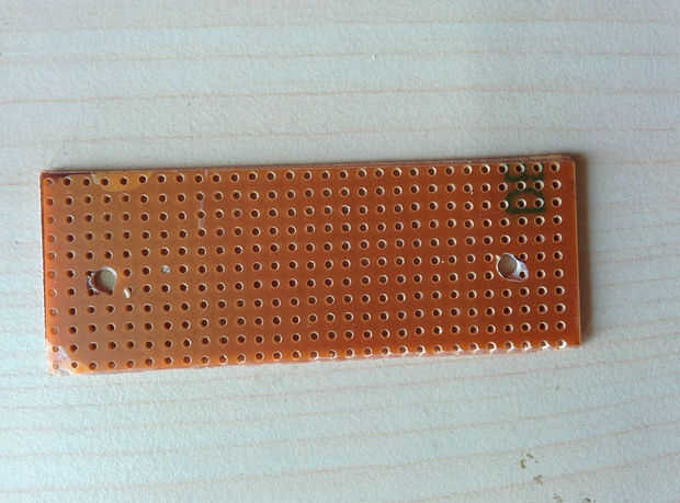 Tomar una placa de prototipo rectangular de tamaño pequeño y taladrar agujeros en ambos extremos para montaje en el recinto.