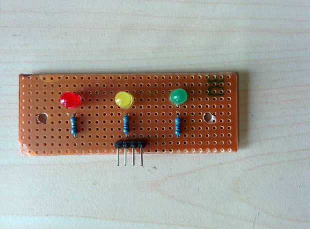 Luego soldar las resistencias de 330 ohmios (R11, R12 y R13) y cabeceras macho de 4 pines.