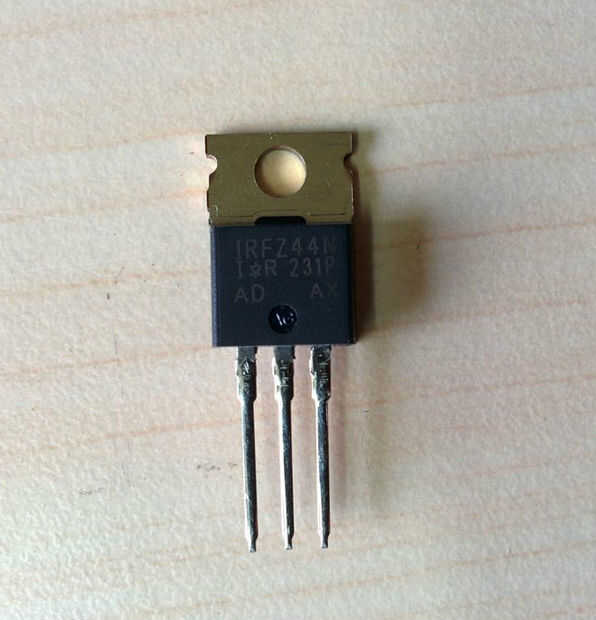 He elegido MOSFET IRFZ44N. El valor de Vds e ID tiene suficiente margen, así como tiene un bajo valor de RDS (encendido).