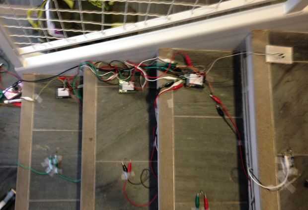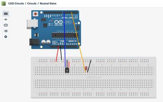 Durante este proyecto, me di cuenta que si intenta subir y ejecutar este proyecto sólo a través del puerto USB del ordenador, la gama de los LEDs IR son muy pequeños, que es la razón por qué las escaleras son tan pequeñas para mi proyecto. Sin embargo, mi conjetura es que la gama será más largo, que cubre la escalera entera cuando hay una fuente de alimentación externa. En realidad, cuando conecté sólo un sensor y un LED, pude obtener la gama completa de la escalera.