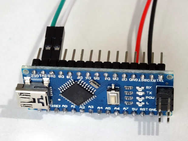 3. Conecte el otro extremo del cable de conexión (alambre negro) al conector de tierra de la placa de Arduino (foto 2)
