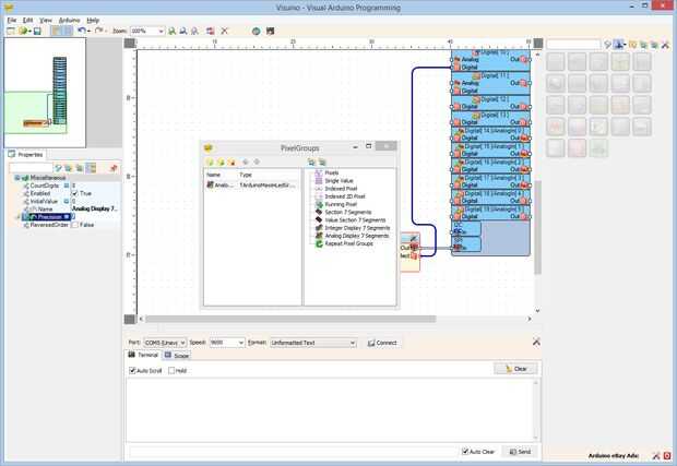 Arduino Nano: Analógico 7 segmento MAX7219 pantalla con Visuino (5 / 9 paso)