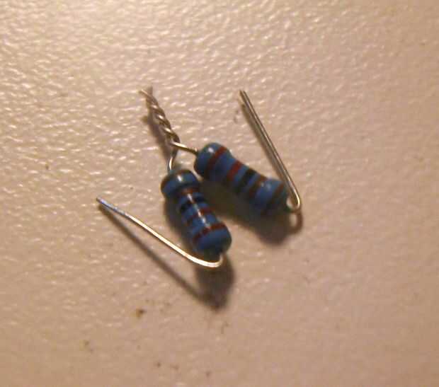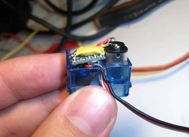 - soldadura de las resistencias, si se utiliza el par de orificio más, recomiendo liar en cinta eléctrica como tal. Para el servo que irá en la parte delantera, corte una ranura para el cable de salida por el lado por lo que no viene por debajo del robot.