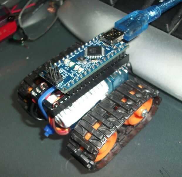 La batería encaja en el ladrón entre los servos vertical y planos y la toma se encuentra en la parte superior (segunda foto). Asegúrese de que las piernas de los zócalos se rompieron hacia fuera para facilitar el acceso. Luego use una o dos abrazaderas de plástico para correa todo juntos, asegúrese de que la hebilla en la parte delantera o trasera, no es por debajo o por encima de la toma, no quiere que llegar en el camino de separación de tierra o conectar el Arduino. Si está utilizando la variante de mini-protoboard, puede que necesite presentar el canal mediano un poco más de la amarra en.