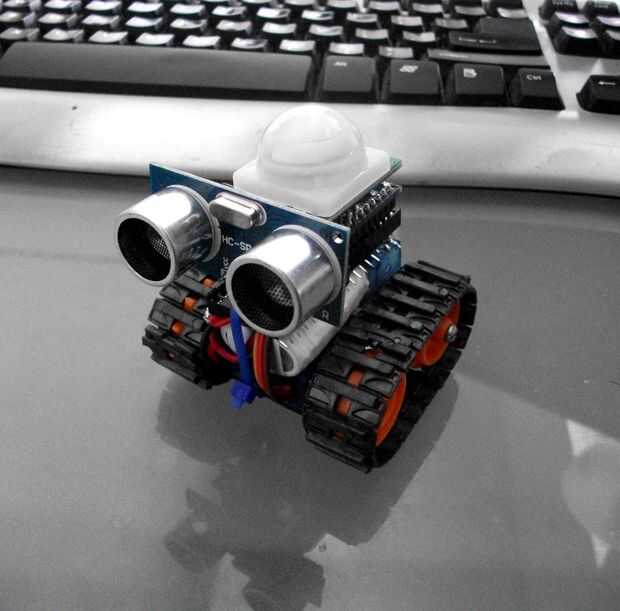 Estos tienen todo integrado, y el pin de salida va alta por unos segundos cuando se detecta movimiento. Todo lo que hacemos es dar el poder de la batería y conecte la salida a un pin de entrada en el Arduino. Entonces establecer una interrupción o comprobar el estado del pin. Como se ve en la personalización de la plataforma de arriba. Esto permite que tu robot reaccionar cuando alguien se acerca.