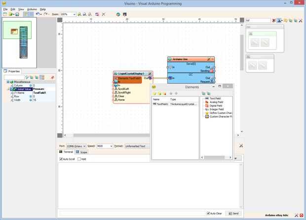 Paso 7: En Visuino: agregar y configurar elementos de texto y valor analógico para mostrar la presión