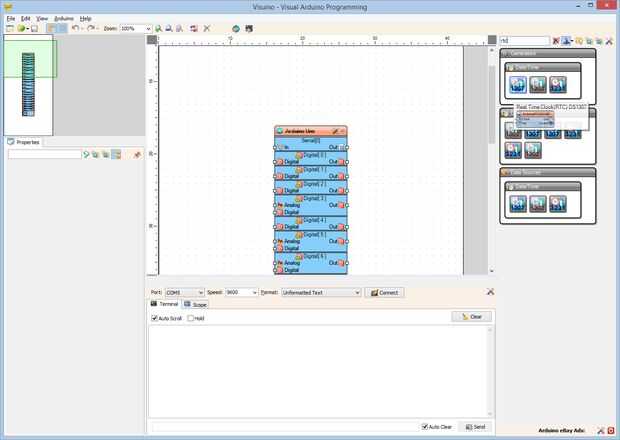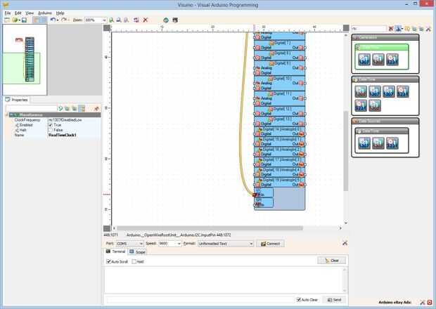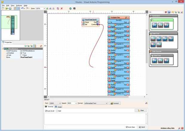 Arduino Nano: Clock(RTC) de tiempo Real DS1307 con Visuino (4 / 6 paso)