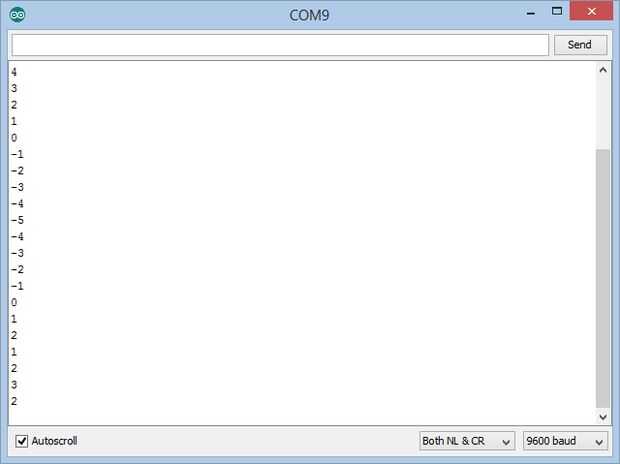 Si conectarse a Arduino con Serial Terminal desde el IDE de Arduino o Visuino y luego gire el encoder hacia adelante y hacia atrás, se verá en el terminal el valor del contador que muestra los cambios de codificador (foto 2)