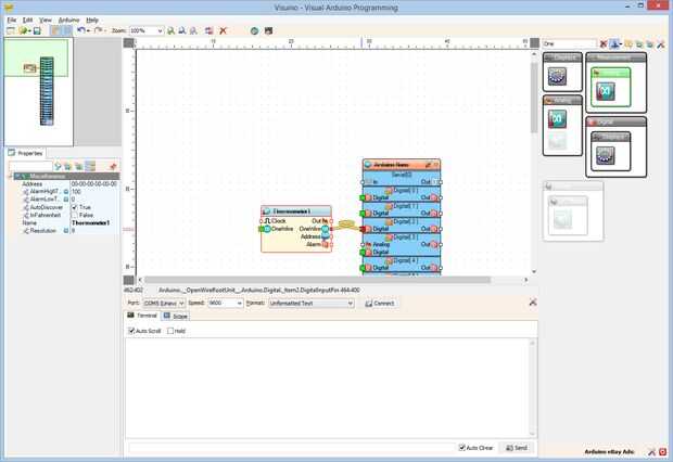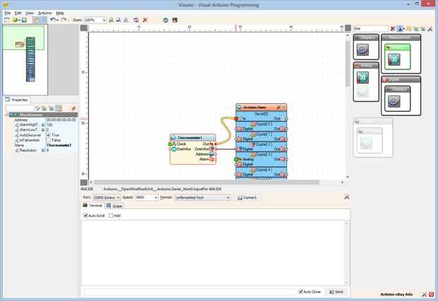 Arduino Nano: Leer DS1820/DS18S20 Maxim un cable termómetro dirección con Visuino