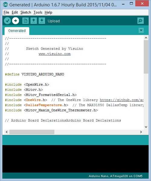 Paso 5: Generar, compilar y cargar el código de Arduino