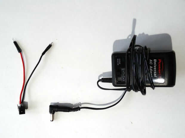 8. Algunos CC de alimentación para el motor (Cuadro 2). He utilizado el adaptador de corriente ajustable, pero funcionará una batería o cualquier otra fuente de alimentación con el voltaje adecuado .