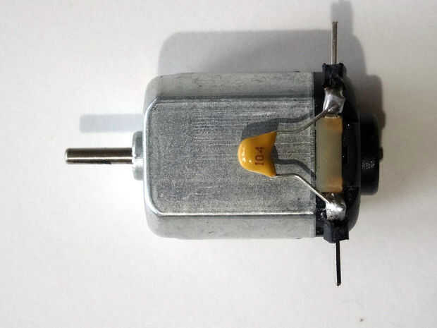 3. Un Pequeño Motor cepillado de la C.C.(es muy recomendable tener un 0.1uF condensador soldado al motor para reducir el ruido como se muestra en la imagen 3)