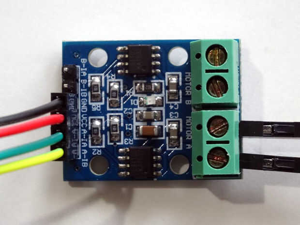 - Conecte el Motor a los puntos de conexión de control del motor canal A del Controlador de Motor Dual L9110S (foto 1)