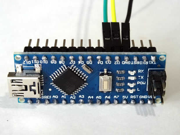 - Conecte el otro macho hembra tierra(alambre negro) con el conector de tierra de la placa Arduino (foto 3) y dejar el extremo macho