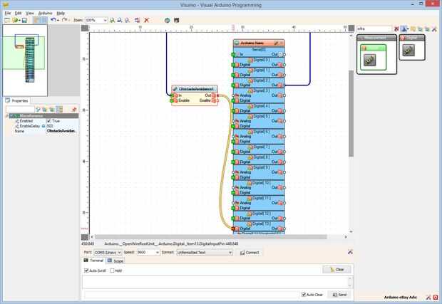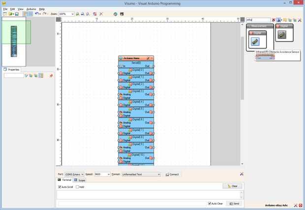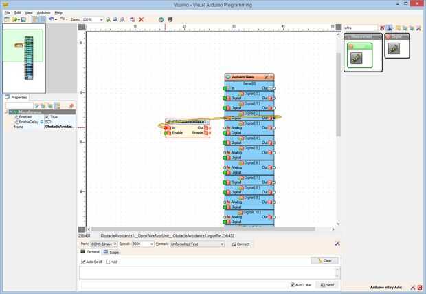 Arduino Nano: Detector de evitación de obstáculos infrarrojo con Visuino (10 / 12 paso)