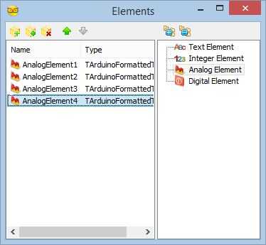 2. En el editor de elementos , seleccione el Elemento analógicoa la derecha y haga clic 4 veces en el "+" botón a la izquierda en el para agregar 4 de ellos (cuadro 2 y 3), entonces cerrar el editor de elementos
