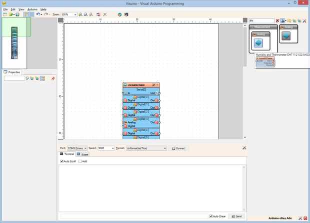 Arduino Nano: Humedad y temperatura DHT11 instrumentación Visual con Visuino (4 / 12 paso)
