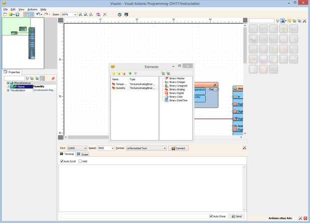 Arduino Nano: Humedad y temperatura DHT11 instrumentación Visual con Visuino (7 / 12 paso)