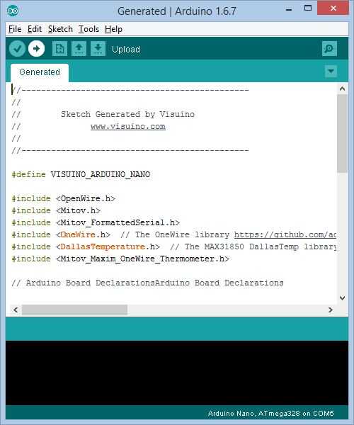 Arduino Nano: Leer DS1820/DS18S20 Maxim un cable termómetro dirección con Visuino (5 / 7 paso)