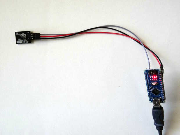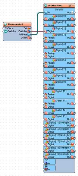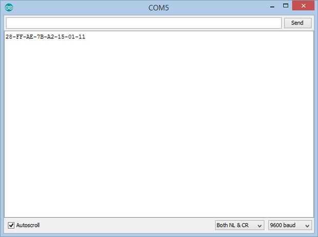 Si abres Terminal de serie en el IDE de Arduino o Visuino, se verá la dirección de un cable del termómetro (foto 2)